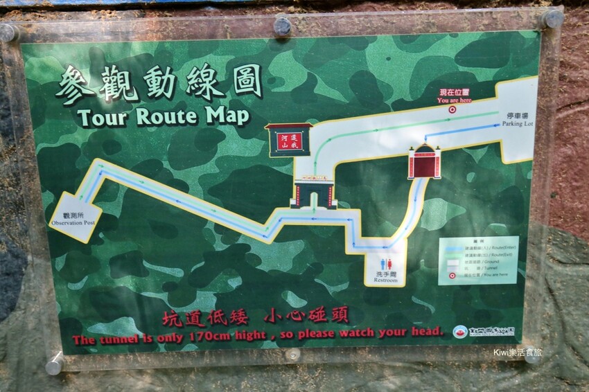 相當隱密的坑道設有槍堡、軍事設施以及3座高倍率的望遠鏡可以看到對岸的人文風光。