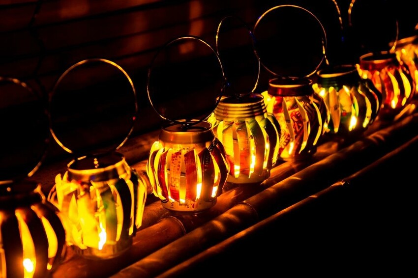 提著空山祭入口借來的小燈籠,照亮前行的路。今年向臺南新生里、空山老鐵們募集鋁罐,