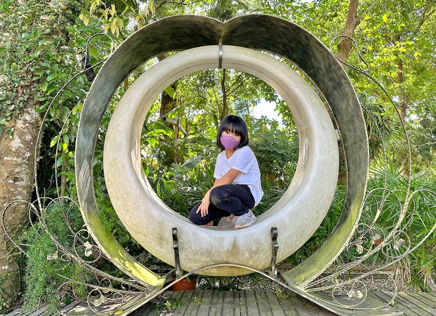 入園之後,蔬果姐妹就被生態魚池給吸引去了,兩姐妹就在餵起魚來,有密集恐懼症的朋友可千萬不要太靠近,飼料一下去,成群的魚各各都張嘴群聚過來。餵完魚,我們就開始漫步在園區內。
