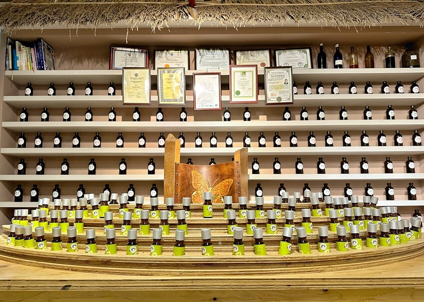 花露休閒農場也還設置了”精油主題館”,一走進精油主題館,精油香氣撲鼻而來,聞著聞著真的讓人放鬆不少,而主體館內販售不少保養品、生活用品等,不少品項都還有提供試用,另外還有足療、手作體驗等服務,詳細都可以詢問園方相關人員。
