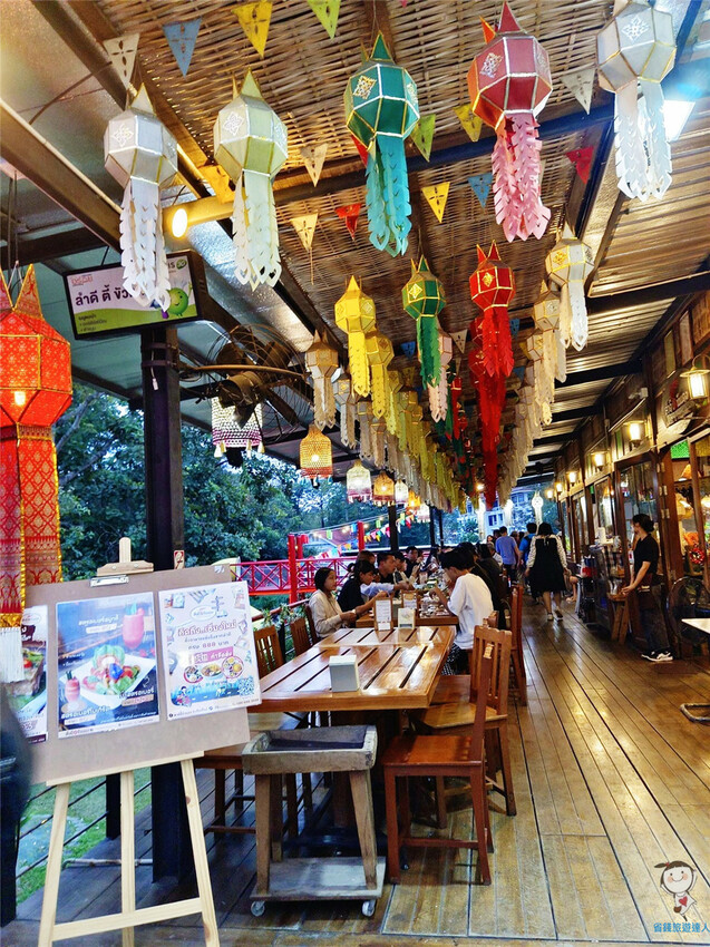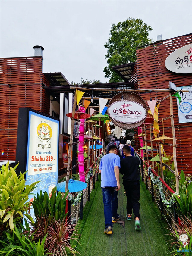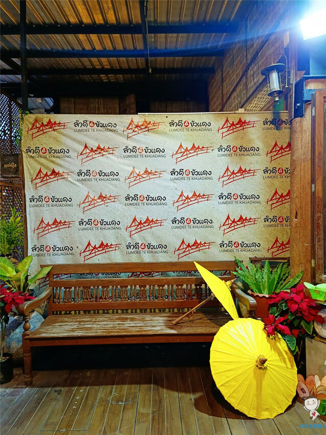 這裡就是紅橋餐廳的入口處,順著斜坡往上走,四周都裝飾著油紙傘和花布等泰國元素