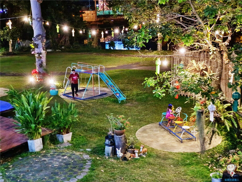 滑梯另一邊就是兒童遊戲區,草地上有些遊樂設施,帶小孩來用餐就不無聊了