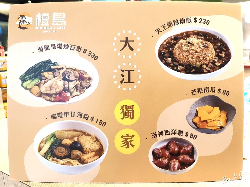 每次到大江都有新發現!! 來自香港,創立已有80幾年的檀島茶餐廳也立足大江了。這裏真是中壢美食購物最好去處。