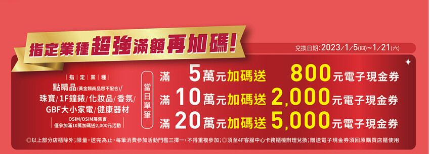 這次過年特別針對各樓層也有個別的滿額現抵活動,把握良機!!