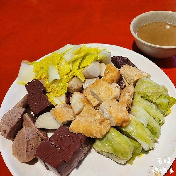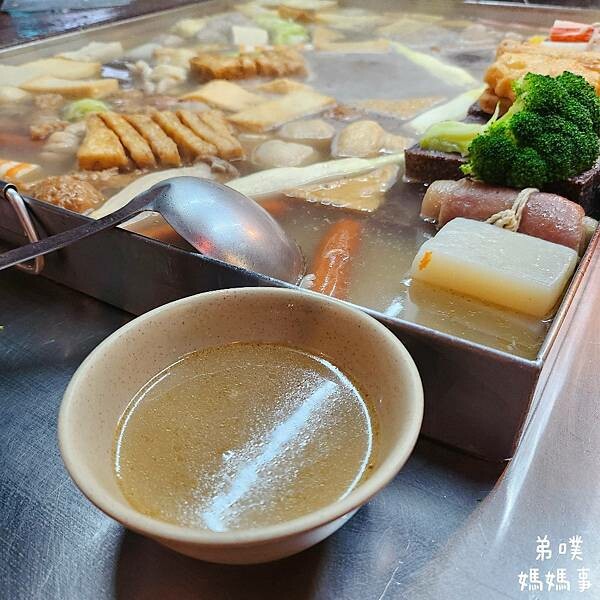 湯頭部分,以弟噗媽喝過的關東煮來說,湯頭偏淡、很清。
