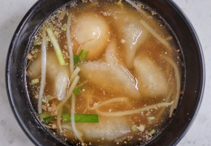 位在可口餅行騎樓的這攤三角亭老店,餐點選擇有肉圓、筒仔米糕、麵類、湯品等,這天我們點了一份肉圓跟筒仔米糕來吃。