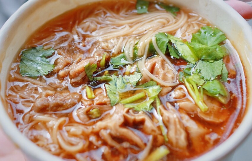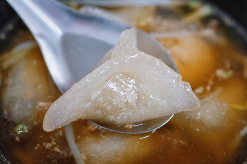 來這用餐,我們點了一碗小份的三角圓加蛋(湯),內有五顆三角圓,加蛋就是直接給你一顆滷蛋,不是蛋包,而三角圓對Ann和榜哥來說就是水晶餃,外皮真的很Q彈,內餡就是豬肉,但調配的味道很簡單,所以會覺得沒什麼味道,種口味的朋友當然就是要加店家自製的辣椒醬等。下次有機會可還要來吃看看店家招牌的麻醬麵以及牛肉麵。