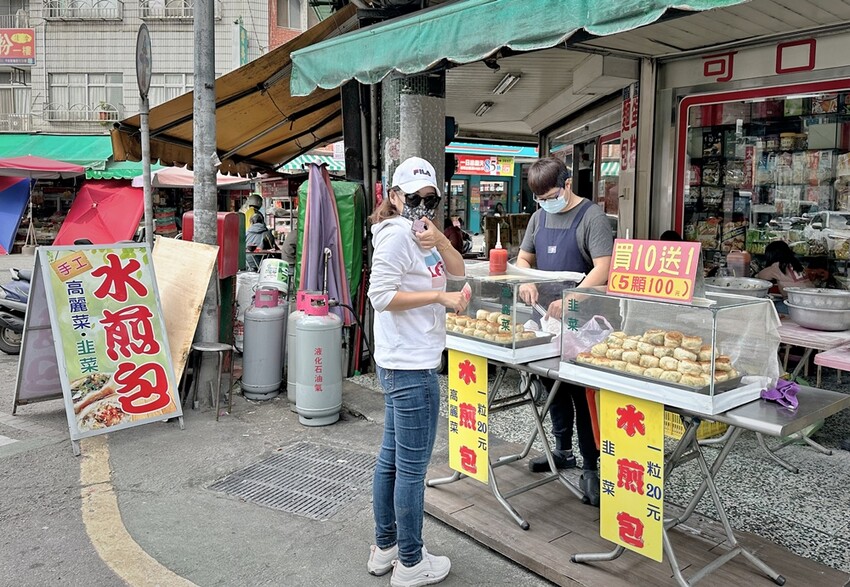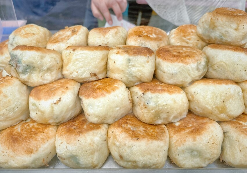 中午之後才會在可口餅行騎樓擺攤的手工水煎包,有高麗菜跟韭菜口味可以選擇,目前可還有買10送1的優惠。重口味的朋友就建議要加辣,手工水煎包加辣是直接把醬灌進內餡內喔!