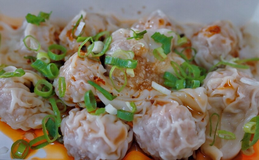 Ann喜歡帥妹滷肉飯的滷肉,肥肉比瘦肉多,但那油膩膩的滋味配著Q又香的白飯一起吃真的超下飯,一旁還放了嫩薑來解油膩,真的挺不錯!紅油炒手則是小而巧,內餡挺扎實有味道,加辣就更加分了。