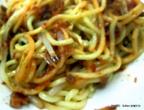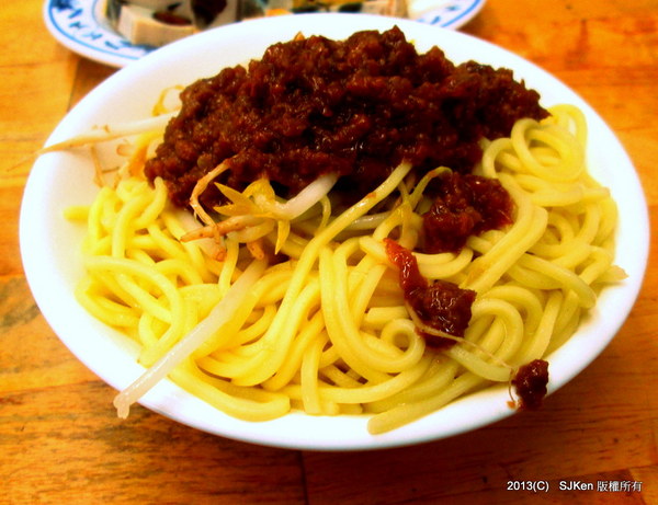 首先登場的就是「肉燥乾油麵」(NT$40),簡單的油麵,淋上一勺店家獨門的肉燥,加上滿滿的豆芽菜跟些許的韮菜,聞起來香氣四溢,麵條Q 彈有咬勁,它的肉燥十分獨特,跟一般常吃到的肉燥味道不同,肉燥調到剛剛好, 豆芽菜很清新爽口,跟麵條與肉燥形成了一種平衡作用,讓整碗乾麵口感層次豐富又細膩,吃入口中,不會有太油或太死鹹的感覺。
