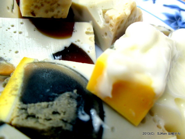 最後點了一盤我超愛的「三色蛋」,由皮蛋、鹹蛋與蒸蛋合成的「三色蛋」,店家細切成片,入口軟Q又爽口,搭配美乃滋十分對味,當然不加任何調味醬,單吃一樣很棒!