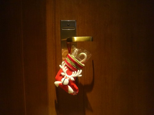 早上出門準備去吃早餐,發現聖誕老公公真的有來耶!