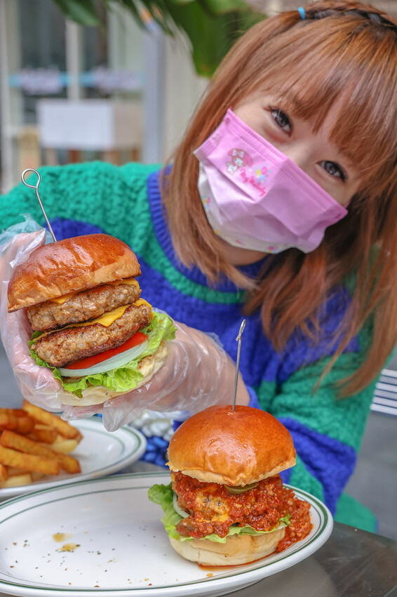 女店員笑著說他們漢堡份量真的不小喔!正常人吃一個就很飽,但我還是點了兩個漢堡來挑戰。