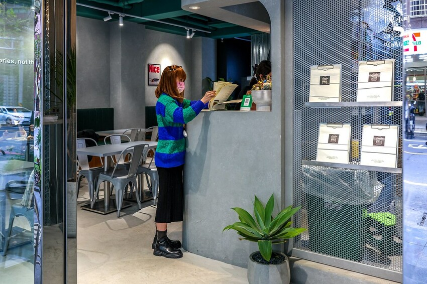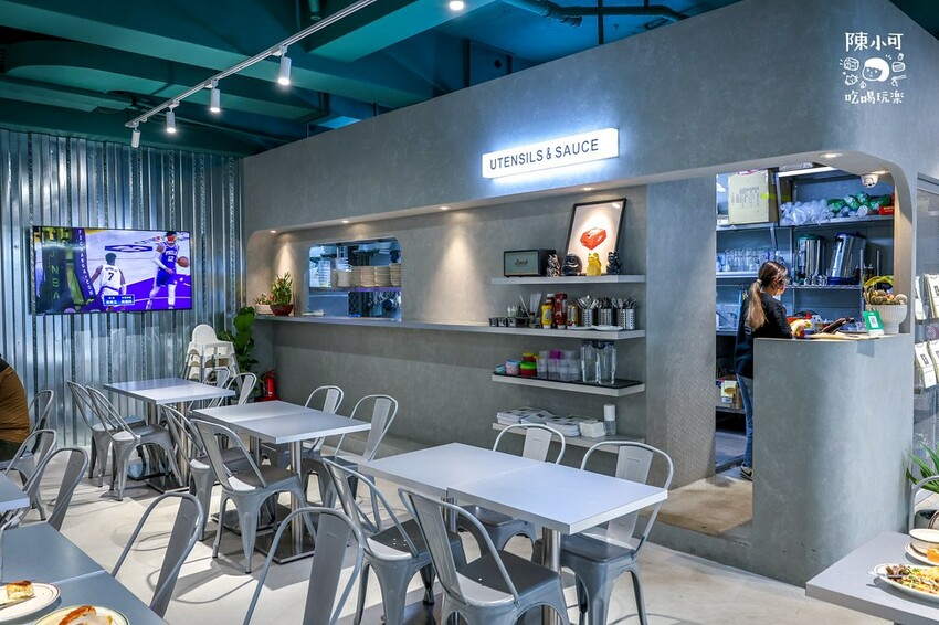 銀灰色的桌椅和牆面配色整體一致,工業風的裝潢風格簡單俐落。