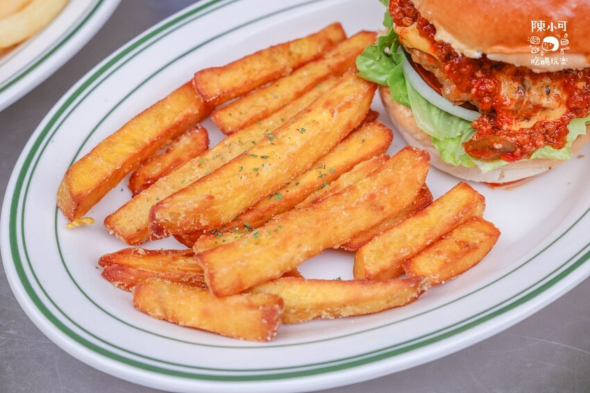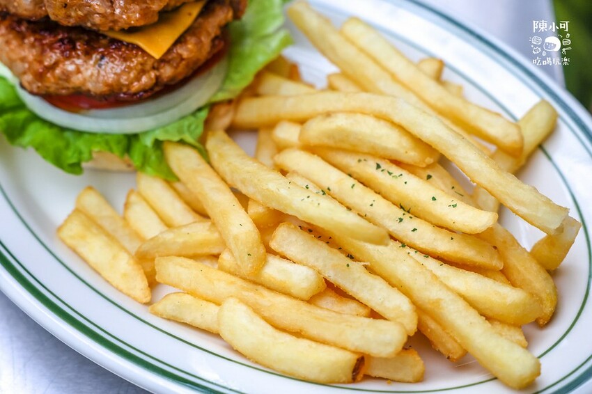 一開始看到價位覺得略高,不過這個列在菜單的第一個漢堡推薦,兩層厚豬肉真的很壯觀,吃完一個漢堡真的就好飽,旁邊炸薯條也是飽足感的原因,份量真的足夠。