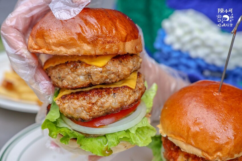 兩層豬肉中間夾著兩片起司增加鹹香,底下搭配生菜、番茄和洋蔥解膩,豬肉咬下去要小心噴汁燙口,整體味道還不錯!只是吃完這一個整個好飽好飽。
