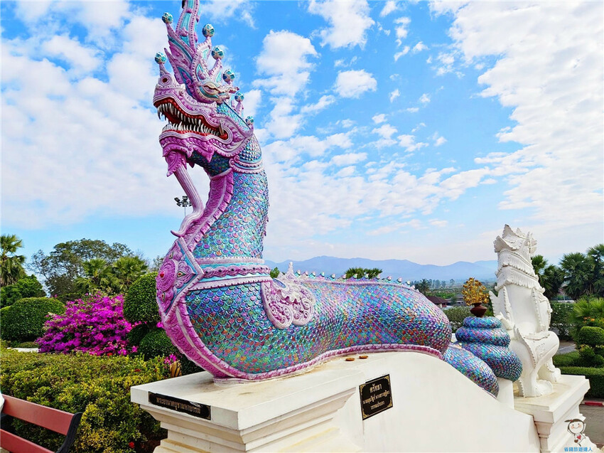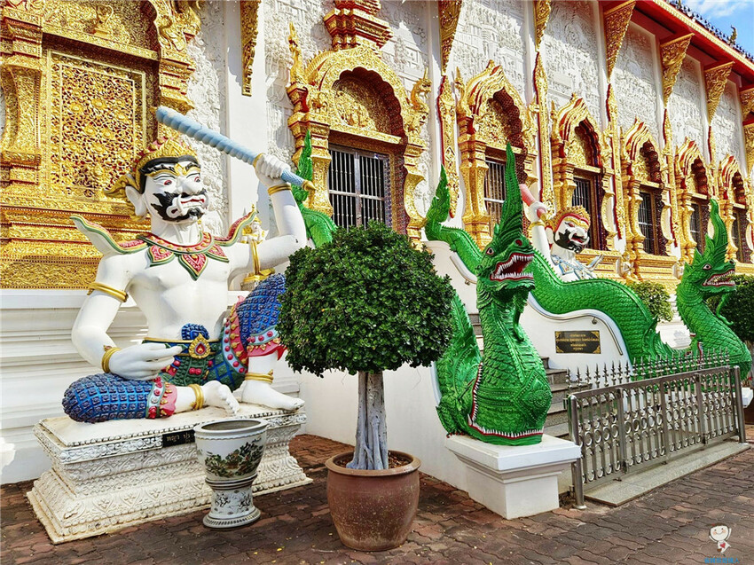 我發現清邁藍廟前的神獸最有看頭,每個寺廟都不太一樣