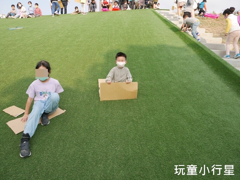 據現場一位先生表示,目前有提供滑草工具,但沒有做記號,未來會貼上記號,以免被民眾帶走。