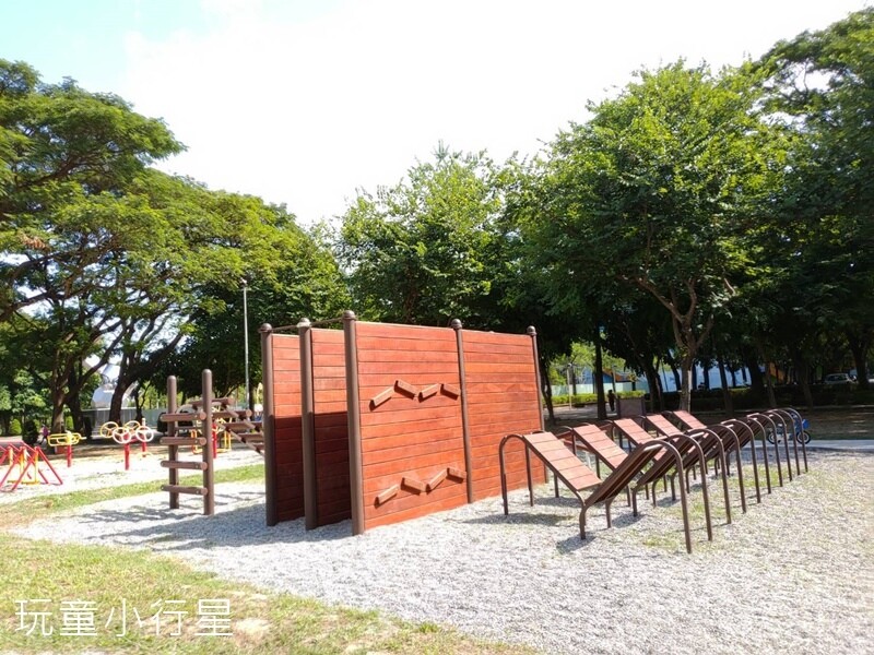 這組V字型的平衡木,跟台南新營體育場的設計方式一樣,但高雄中央公園的比較小型。