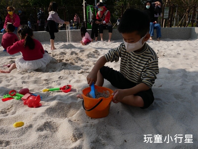 沙坑區,上方的遮蔭若有似無,還是自己戴上帽子,帶把傘來遮比較實在。