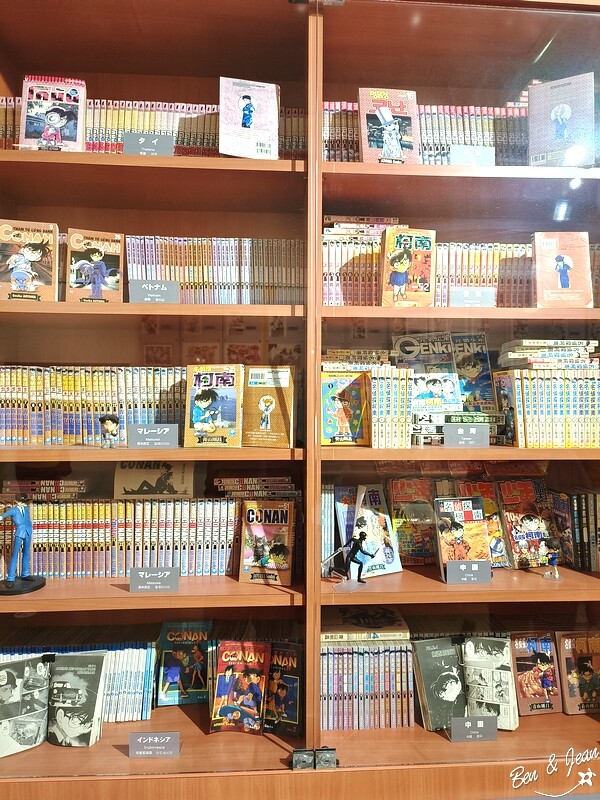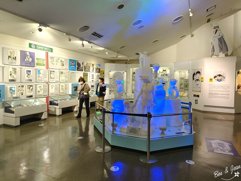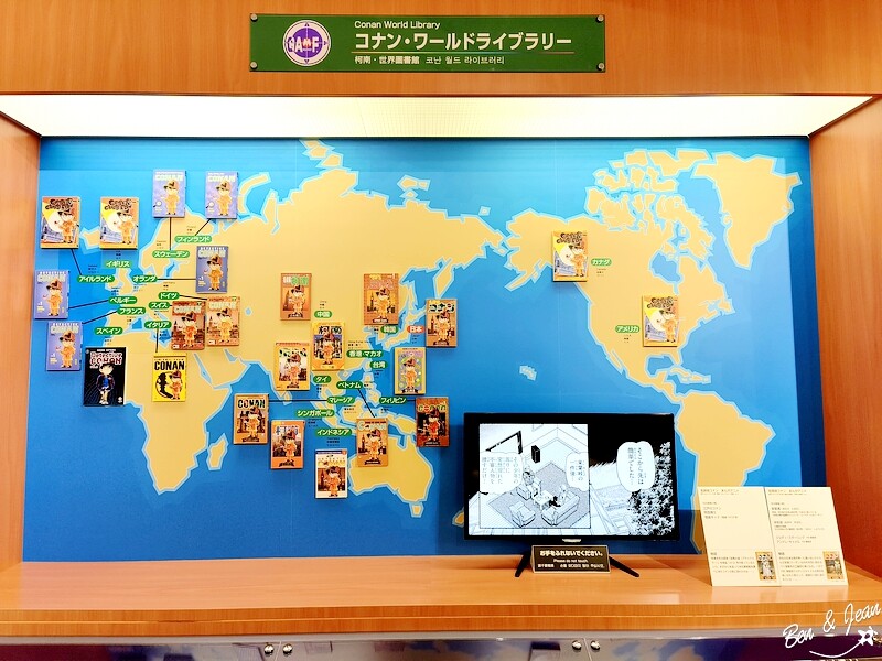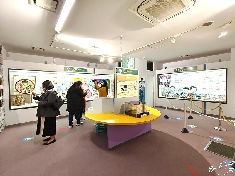 紀念館裡除了作者青山剛昌各種漫畫手稿、電視版漫畫劇集,也有不少琳瑯滿目的柯南紀念品,也可以玩玩互動遊戲