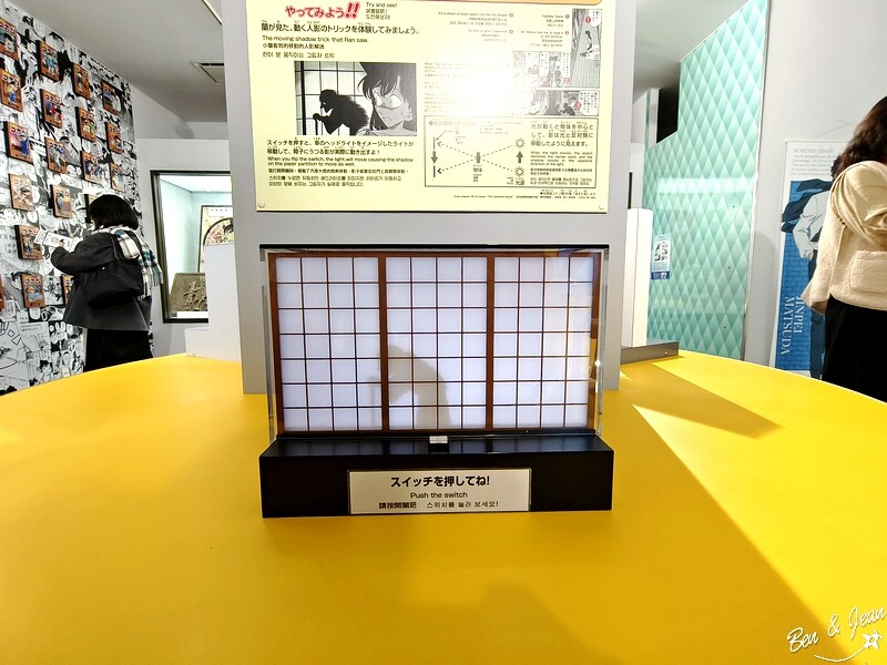 這一區的體驗互動區也滿有趣的,說明漫畫中一些密室、機關的手法是怎麼做到的