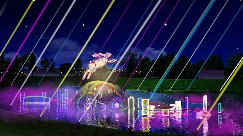 這一區的「萌兔萬花筒」有10米高LAYHER裝置,會投射各色萌兔