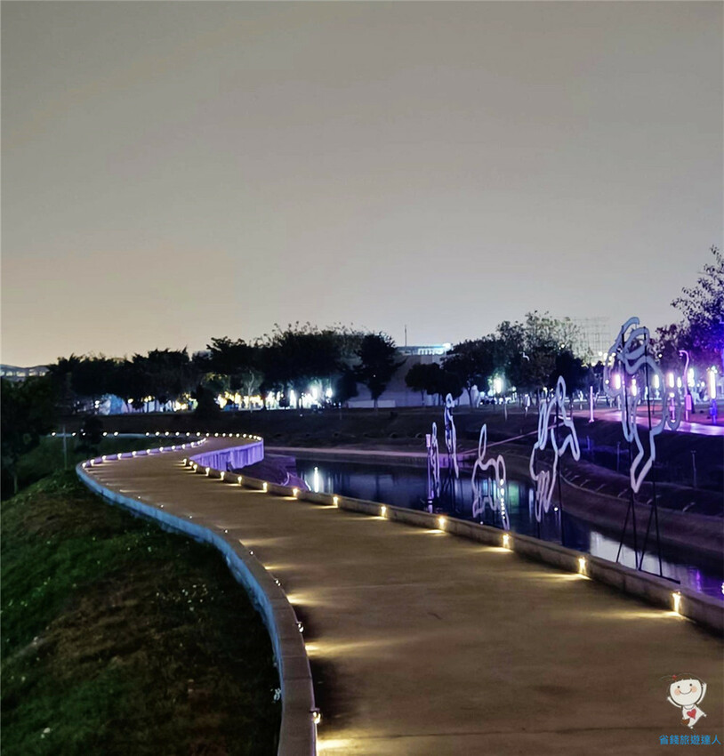 河道對岸就是「萌蟲蟲」燈區,站在堤防這邊剛好可以一覽無遺