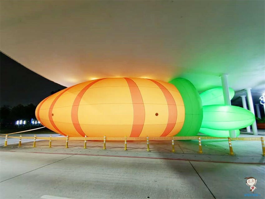 天橋下方還硬塞了一隻巨大的紅蘿蔔,四周還得用黃線綁著,免得民眾誤入