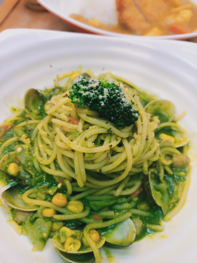 金老闆的青醬真的沒話說,特別的香!義大利麵體吃起來也挺Q,不會因為便宜就用廉價的麵條。對了,喜歡吃辣的朋友,記得點餐時請老闆加上辣椒下去炒,金老闆的義大利麵醬汁,加上辣椒後,整個層次來到天頂,好吃的不得了!!而這道蛤蜊青醬義大利麵只要75元,你相信嗎?而且金老闆義大利麵及燉飯的醬汁,可以自由選擇,有白醬、紅醬、青醬、咖哩以及泰式,這麼多種口味,愛吃什麼醬就選什麼醬。