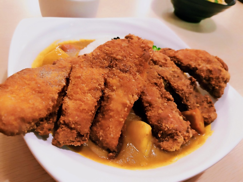 本來說已經吃不下豬排了,但後來臨時來了一位朋友,於是馬上點了豬排咖哩。金老闆的豬排很香肉質又很嫩,真的好吃!!難怪被稱為金老闆三寶:炸蝦、雞排、豬排。豬排當然比不上外面的厚切啦,這道豬排咖哩才110元,老闆真的超佛心的!!金老闆的咖哩不是作辛口那樣重口味,而是大眾都能接受的。重點是金老闆的咖哩口味真的很特別,很香又很爽口。不像很多咖哩店的味道都有一種中藥味,我很不喜歡。豬排跟著咖哩味道真的超搭,難怪是點播率第一名。常常晚一點來咖哩就賣光了喔!!