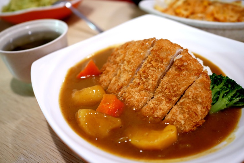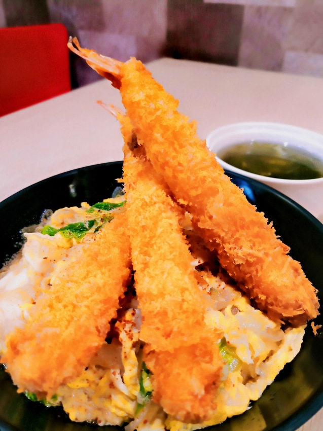 日式炸蝦蓋飯,來之前就有看好多網友說金老闆的炸蝦、豬排及雞排都超好吃,但因為一個人的胃只有一個!所有選擇了炸蝦蓋飯以及大塊雞排咖哩。炸蝦真的是口口都是蝦肉,麵衣酥脆超好吃,這樣三大隻只要150元,真是太划算了....金老闆蓋飯的醬汁,是承襲之前在日本當地家庭式的作法,所以跟大家平常吃到的味道不太一樣,但是甜甜鹹鹹的,很有金老闆自己的特色!不像現在台灣餐廳的蓋飯醬汁,好像都是出自同一間工廠,味道都相當雷同!!