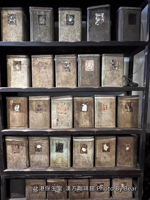 也可以看到一整面存放中藥藥材的鐵罐