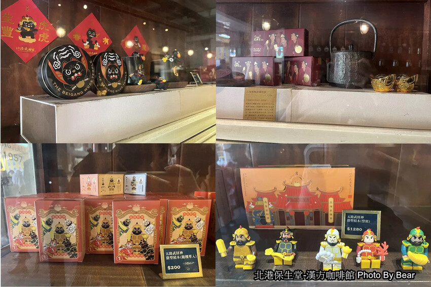 櫃檯前的木質玻璃櫥窗展示櫃,放有五路武財神的公仔,有興趣的人也可以看看