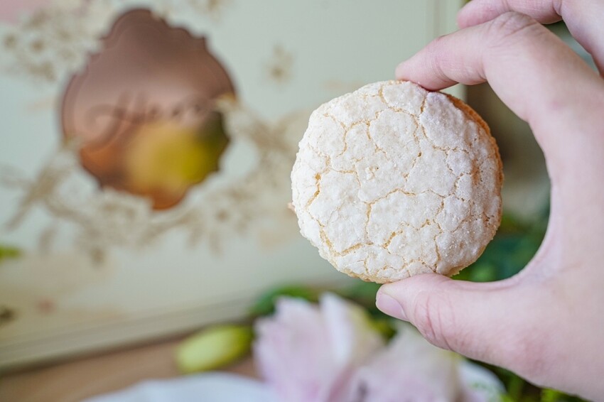 外層微酥口感,搭配內餡的榛果,吃起來像馬卡龍,但不會像馬卡龍那樣甜膩,甜度剛剛好