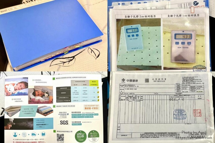 八鐘頭的床墊,每個原料都有清楚的檢測認證文件,厚厚一疊的資料皆是八鐘頭做原料的把關,內材安全無毒,就連就連床墊黏合的「膠」也都是使用無揮發物的「無毒水性膠」!這個跟環保強力膠完全不一樣啊,無刺鼻臭味、無甲醛、無甲苯,真的令我非常驚艷!