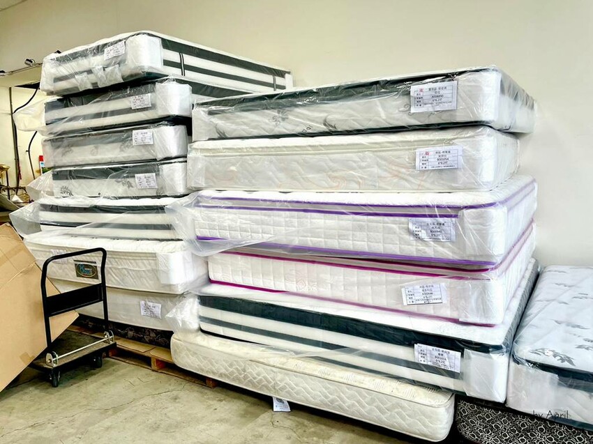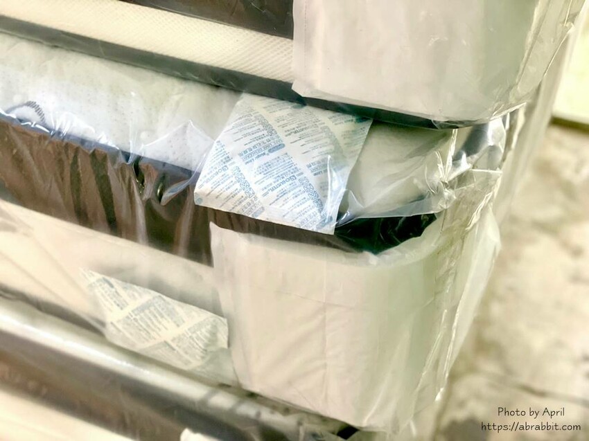工廠一旁的區塊堆疊著做好等著送出的床墊,這些床墊因為剛製作完成,包裝好其實會有些微水蒸氣,水蒸氣是對人體無害的,接觸空氣後即會蒸發,不會影響床墊結構,也不會吸入有害物質,我還發現他們的床墊裡面還塞著乾燥劑呢,超貼心。