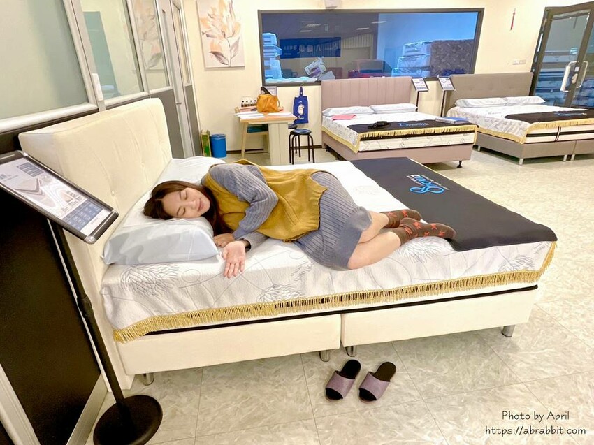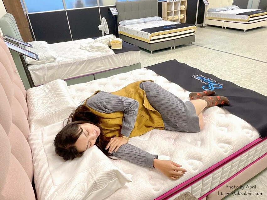 當天除了我以外,其實還有其他組客人也來參觀試躺,一家大小一起來,服務人員都非常熱心且溫柔的介紹。且建議試躺床墊最好同一個姿勢試躺個10~15分鐘會比較準確,而且最好正躺、側躺都試試看,才能找出最喜歡、最適合的床墊。