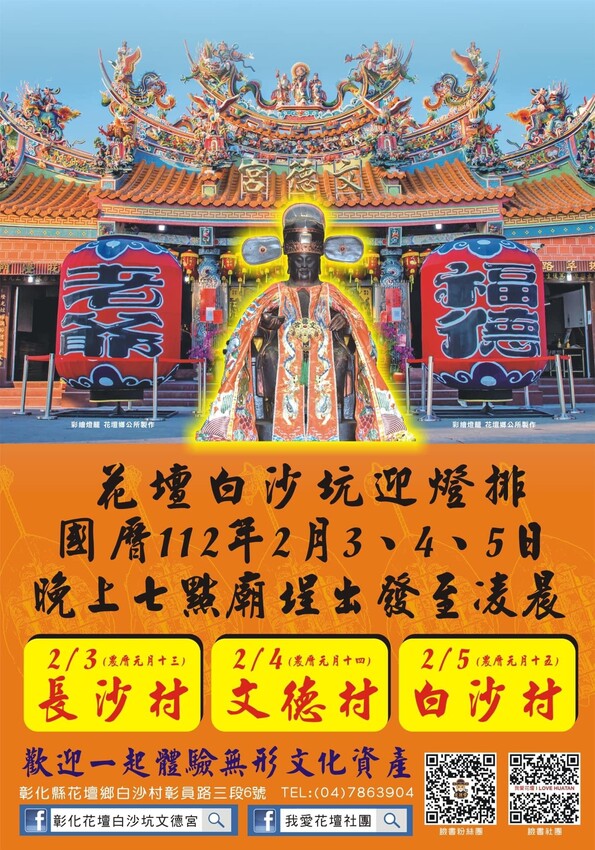 花壇燈排活動112年2月3、4、5日,晚上7:00從廟埕出發至凌晨。