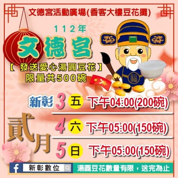 文德宮活動廣場,香客大樓豆花攤限量500碗