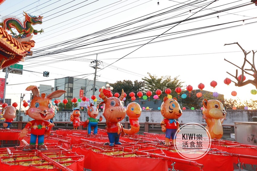 十二生肖的花燈在門口處,夜晚這點起燈會很美喔