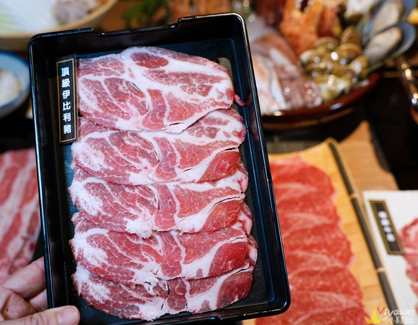 ▲如果不吃牛肉也沒關係~因為他們的頂級伊比利豬也是超給力的~這伊比利豬的厚度很足~油花也恰恰好~煮熟也是軟嫩不乾澀~這款也是一定要點的啦☺