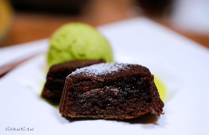 ▲熔岩布朗尼也是非常好吃,表層有點微微酥脆的口感,裡面有苦甜的熔岩內餡,搭配著一旁的冰淇淋享用,吃起來甜度不高,也很值得點呢😋