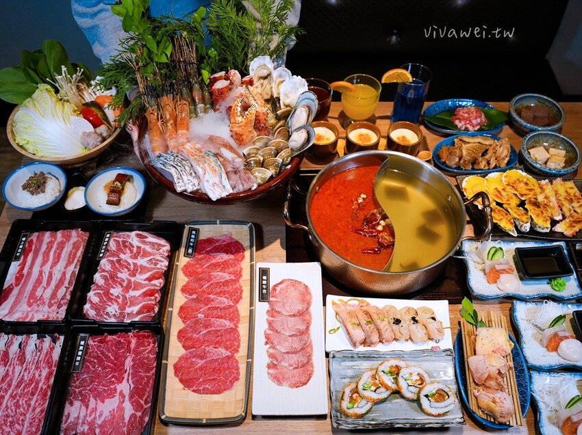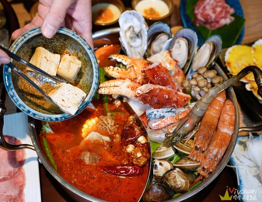 火鍋配料則有豆皮、手工芋頭丸、手工花枝滑、手工蝦滑、手工霜降翠玉捲、手工花枝野菇封、手工鮮蝦紙豆腐等可選擇!