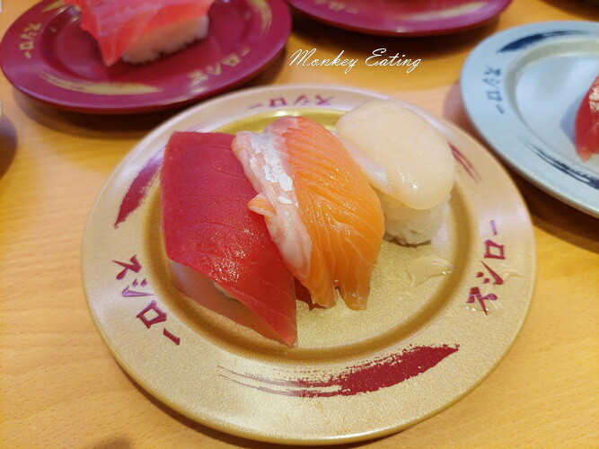 單盤的綜合握壽司,有鮪魚、鮭魚、干貝,這組合也很可以