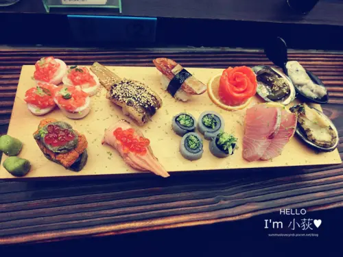 炙烤牛肉、花枝、北寄貝吃起來都很新鮮,沾上芥末醬油風味更棒