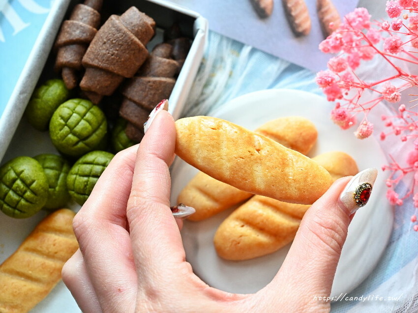 將原味手工餅乾做成法國長棍的模樣,做工相當細緻,採用法國奶油製作,口感香脆,伴隨著迷人的奶油香氣