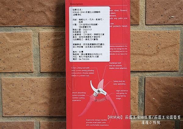 托鄰居朋友幫忙購買的園藝剪一共有2款,這是一家專賣台灣園藝工具的品牌,擁有30多年工藝技術以及和多個國際知名品牌合作的HOKAS,想把大自然帶入每個台灣家庭中,期望每個人都能透過綠色療癒,重新找回對生活的熱情和生命的能量。