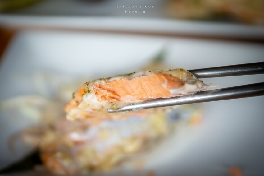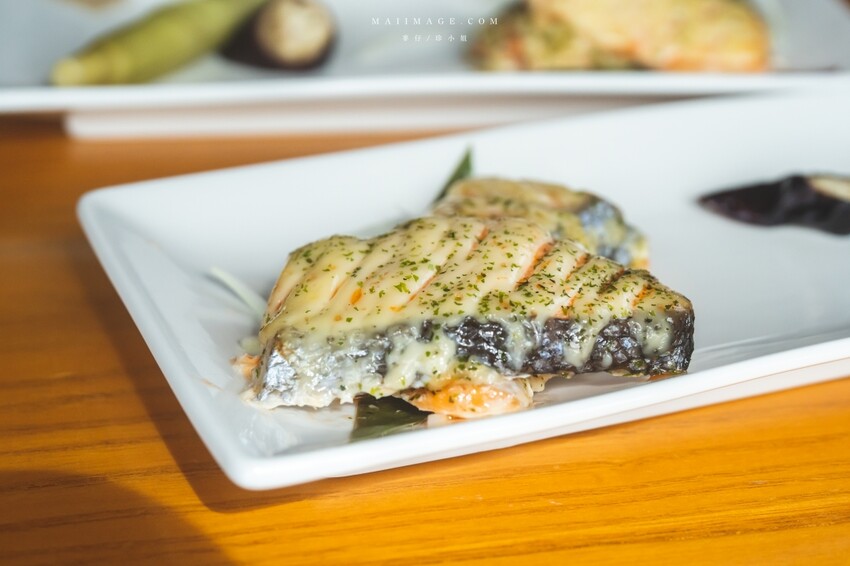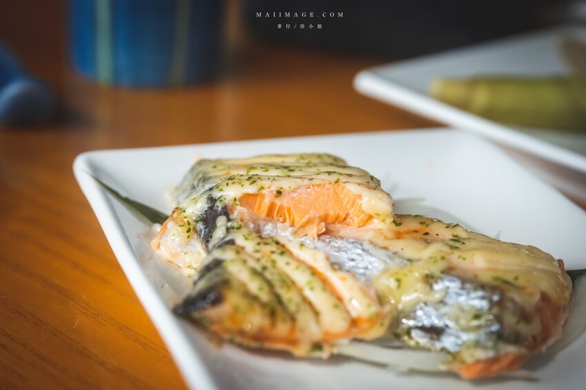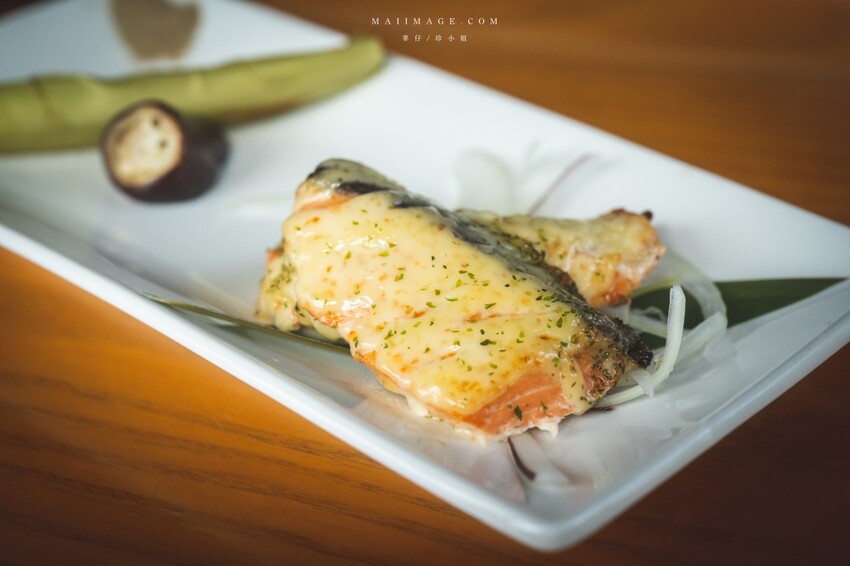 ●燒物~鹽烤銀鮭佐蛋黃醬