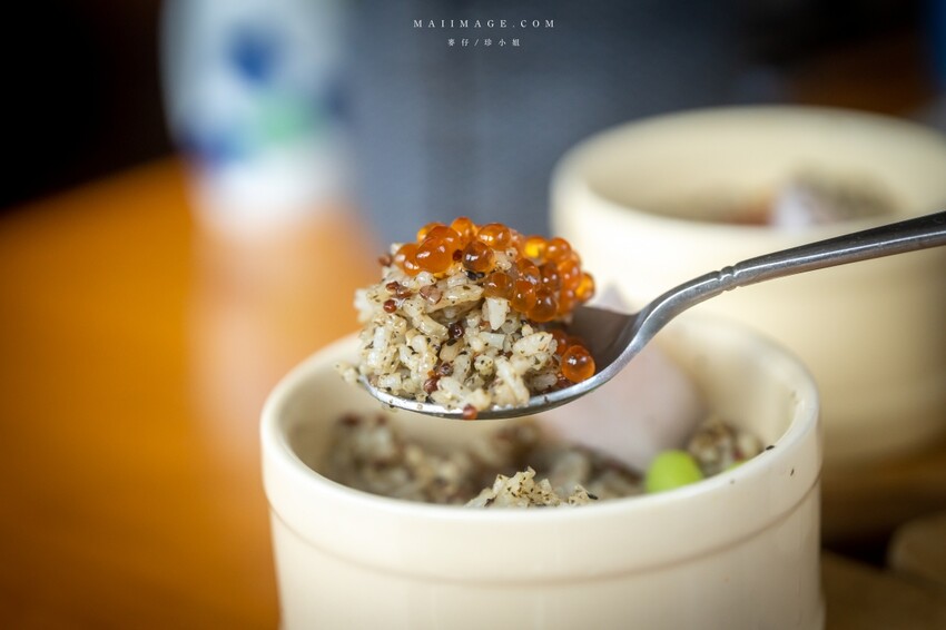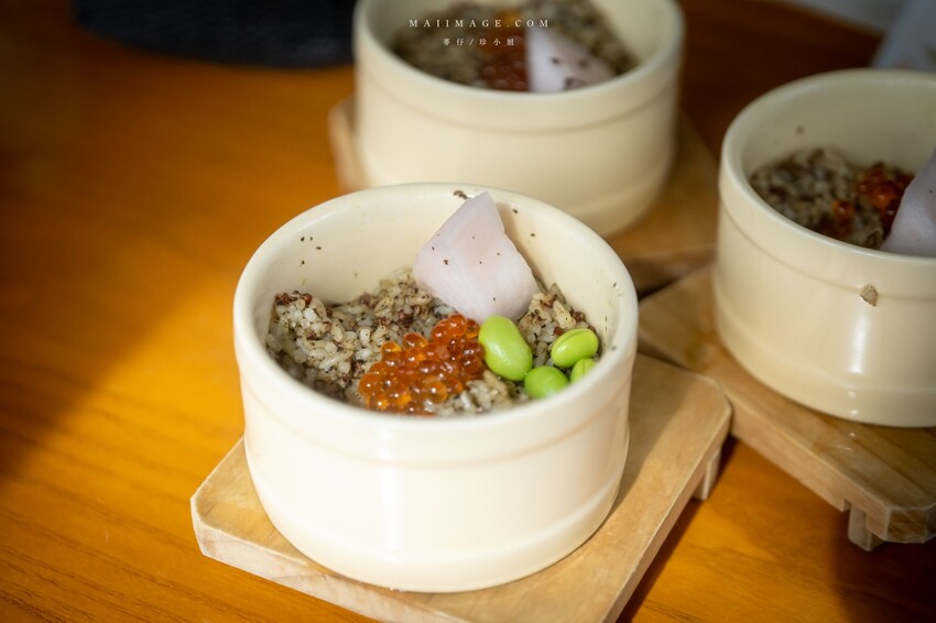 這道也是相當清爽的料理,裡面的干貝是生食級的,上面還用魚子醬點綴。